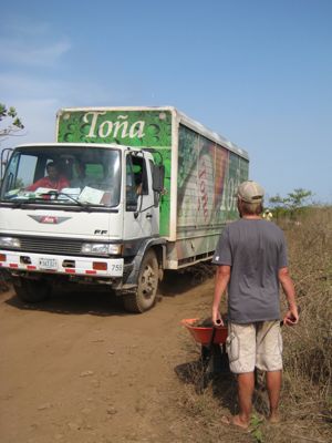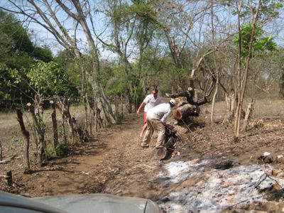 The locals have started to figure out that gringos = $$$s. A particularly enterprising local named Hector showed up to offer us some land he has for sale. We decided to go check it out just to see. He took us on a long drive down progressively narrower dirt roads. At one point Hector and Joe had to hop out to clear our path of a large tree.