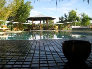 We felt like we were on vacation. Running water, air-conditioning, a toilet that flushed without having to pump a well first, and check out the view of the pool!