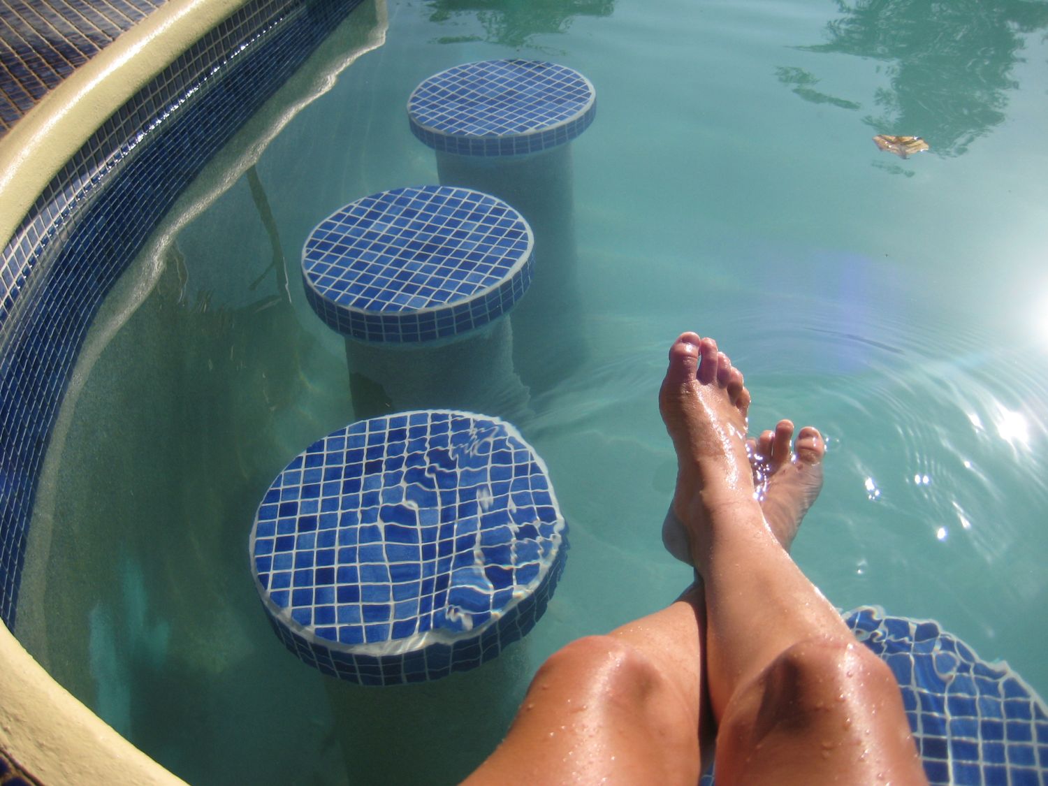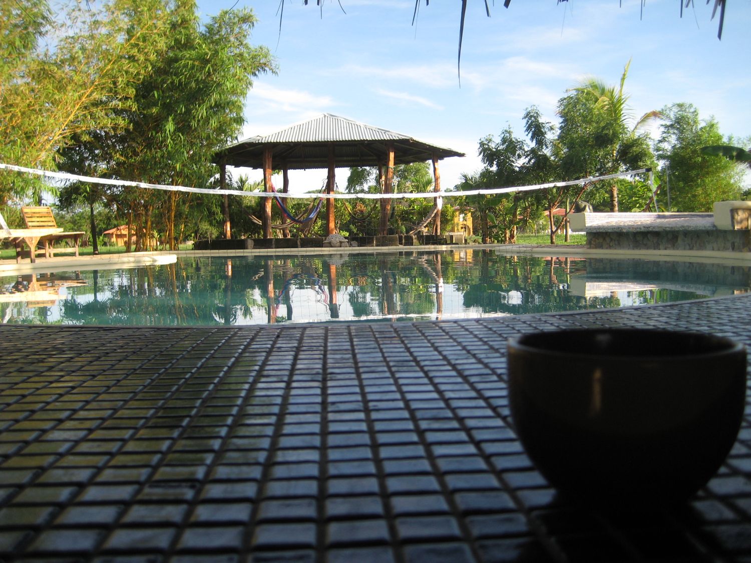 We felt like we were on vacation. Running water, air-conditioning, a toilet that flushed without having to pump a well first, and check out the view of the pool!