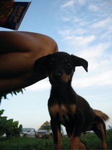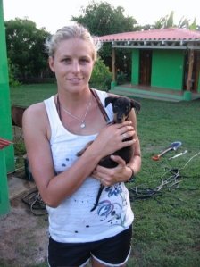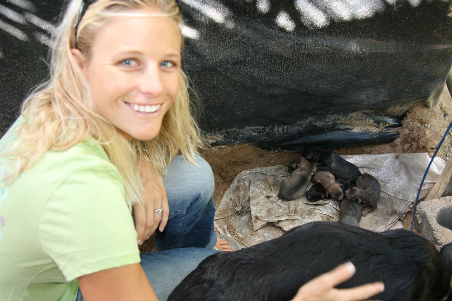 Ducha was tired of course, but we brought her food and she wagged her tail at us happily then stood aside to show off her babies. I had never seen puppies so young and was so upset that I had to leave and get on a plane. Chevello promised that he would take good care of her and them. Ryan and I picked out two puppies that we would keep. The little brown one that i’m holding and the little gray one. Chevello would also keep two and the other two would go to the hotel.