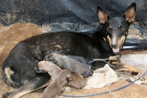We spent those six weeks feeding her, went home for 5 weeks, then returned to Nica for another three. By September Ducha was the best fed and therefore best looking dog around, nice and filled out with a shiny coat and a springy step. We werent’ the only ones who thought so. By the time we returned in November, she was pregnant!