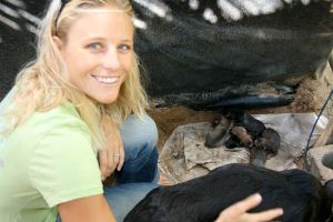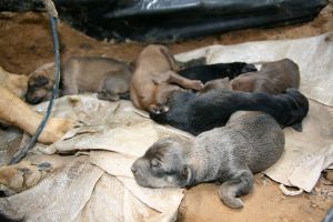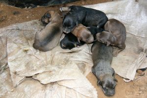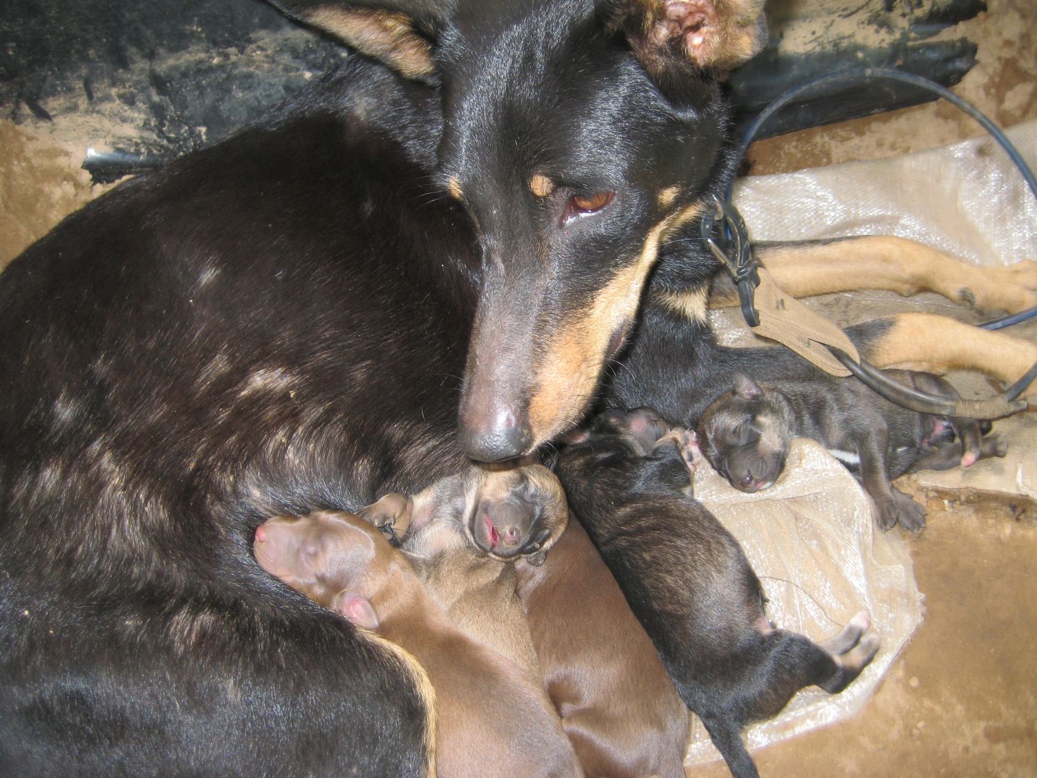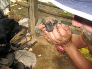 I also really wanted to be there. I had to leave on the 19th to be in Fiji by the 21st for a photo trip, and asked Chevello when he thought she would have them. He said either the 19th or the 20th. I hoped for the 19th, and my hopes paid off. I was all packed up and dressed for the airport when Chevello came and told me that i’d gotten my wish. We rushed over to his house to see the beautiful 5 hour old puppies, all six of them.