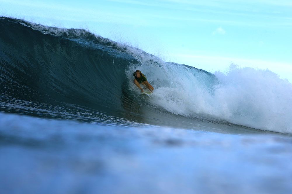 The next morning we hopped a flight to the Galapagos Islands where we rolled past big fat lazy seals that loudly reminded us that they own the sidewalk. Fleets of frigates darted and dove as we fried the skin from the bottoms of our bare feet, hot-stepping over sun-baked lava rock past green-lipped marine iguanas almost as numerous as the seals. I didn’t expect the surf to be anything to claim in facebook status updates. Jen Smith had been there before and gotten skunked. After our first sea life-filled waist-high struggle session, I focused my excitement on the chance to snorkel with hammerheads and tickle baby seals. The sharks were deep in murky water and I got only a quick fleeting glimpse, but at least could honestly add hammerhead to my list of shark encounters. Kimi started a tug-of-war with a mischievous baby seal over her mask and snorkel while a couple of his buddies tag-teamed chewing on my flippers. Then the semi-secret world-class right reef break walking distance to our house rental that our guides assured us would not be breaking turned on. We scored near overhead peeling rights for two days, in the Galapagos!